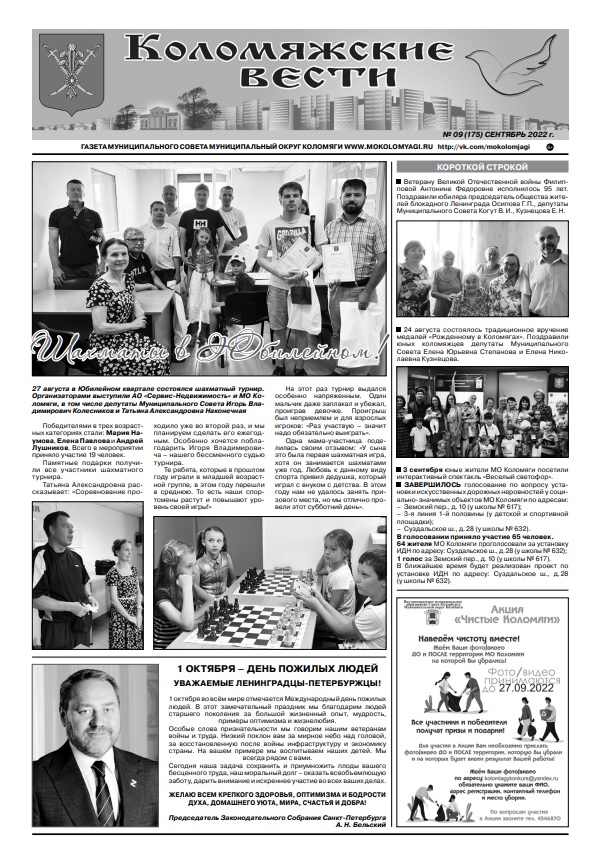 Свежий номер газеты «Коломяжские вести» — сентябрь, 2022