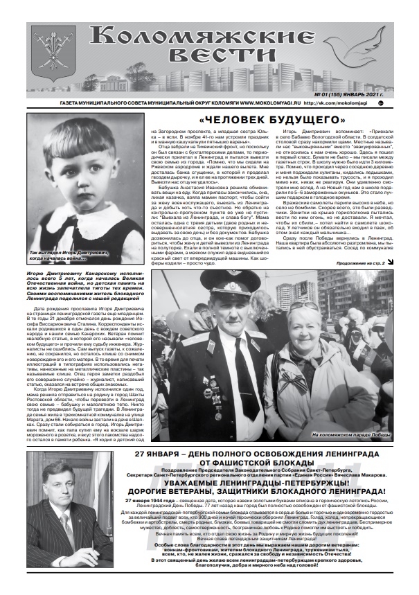 Свежий номер газеты «Коломяжские вести» — январь, 2021