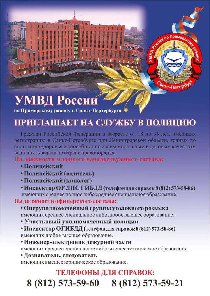 УМВД России приглашает на службу в полицию