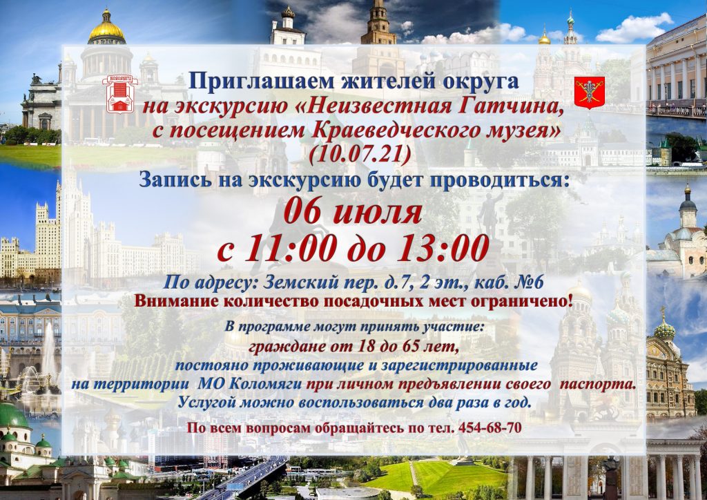 В связи с эпидемиологической обстановкой, запись на экскурсии для жителей МО Коломяги будет проводиться дистанционно
