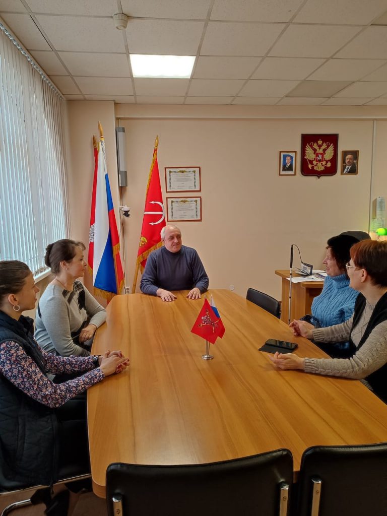Председатель общества слепых Приморского района Александра Борисовна Тимофеева и председатель Общественного Совета по работе с владельцами собак-проводников при правлении СПб РО ВОС Алла Олеговна Пелешева посетили муниципальное образование Коломяги и обсудили с Главой МО Сергеем Эдуардовичем Борисенко вопросы по взаимодействию и реализации совместных проектов по оказанию помощи инвалидам по зрению.