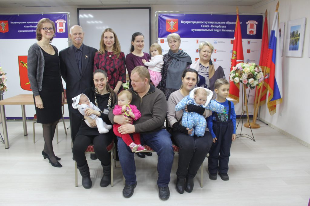 4 февраля 2020 года в муниципалитете состоялось вручение медалей «Рожденному в Коломягах». Сегодня памятный сувенир получили три девочки и два мальчика. «Мы стараемся уделять большое внимание семьям и продолжаем традицию по вручению медалей», — отметил заместитель Главы МО Коломяги Владимир Дмитриевич Крылов.