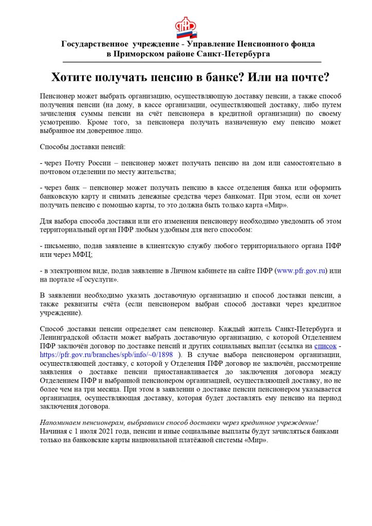 Хотите получать пенсию в банке? Или на почте?