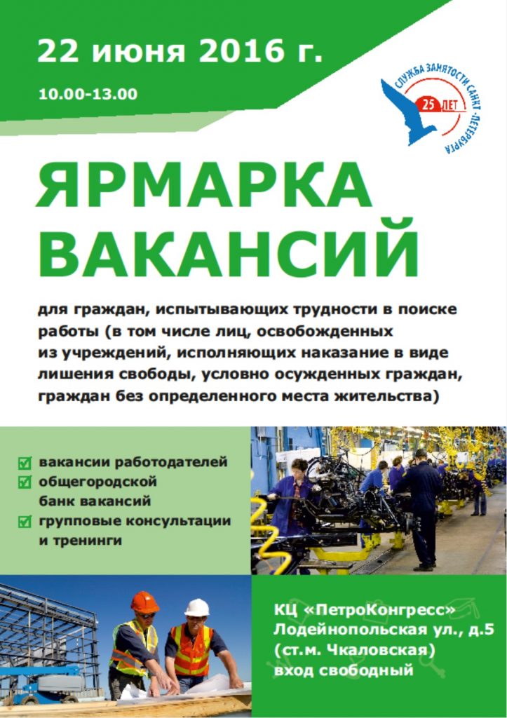 Ярмарка вакансий для граждан, испытывающих трудности в поиске работы — 22 июня 2016 года